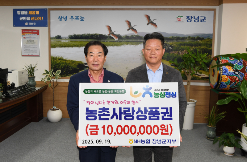 NH농협 창녕군지부(지부장 신우경)는 1천만원 상당의 농촌사랑상품권을 창녕군에 기탁했다.