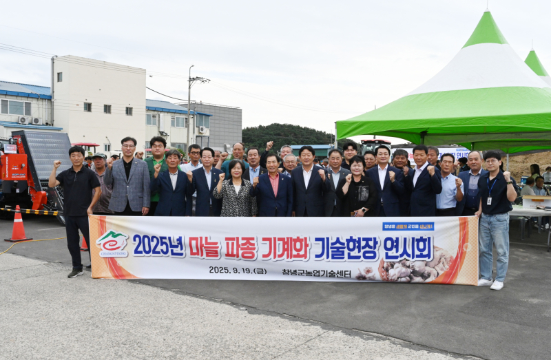 창녕군은 지난 19일 창녕군농업기술센터에서 마늘연구회원, 마늘 재배 농업인 및 농기계 제조업체 등 80여명이 참여한 가운데 ‘마늘 파종 기계화 현장 전시회’를 개최했다.