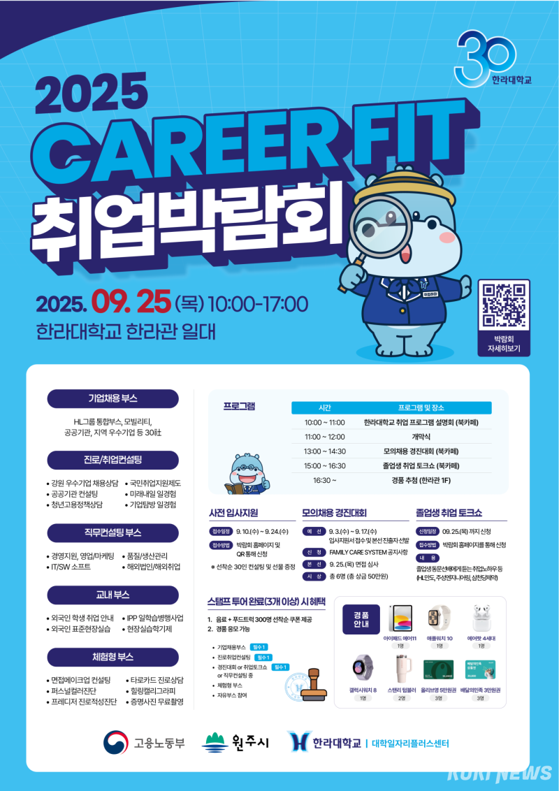한라대학교(총장 김응권) HL대학일자리플러스센터는 25일 대학에서 ‘2025 CAREER FIT 취업박람회’를 개최한다.