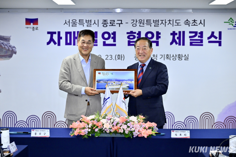 강원특별자치도 속초시(시장 이병선)와 서울특별시 종로구(구청장 정문헌)는 23일 종로구청 기획상황실에서 상생발전과 활발한 교류 협력을 위한 친선결연 협약을 체결했다.