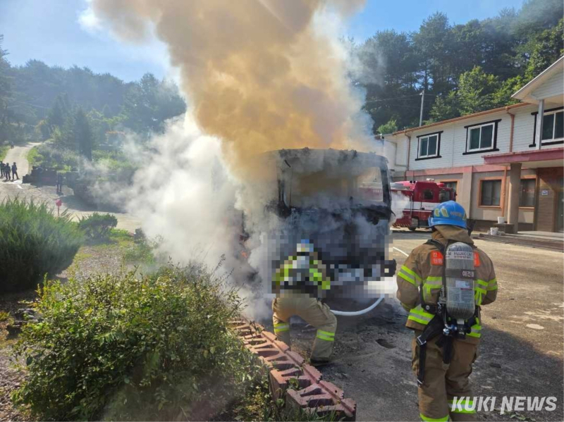 소방 당국에 따르면 이날 오전 9시 58분께 인제군 북면 고미재 펜션 인근 공터에서 7톤 크레인 특장차량에서 불이 나 1시간 30여분 만에 진화됐다.