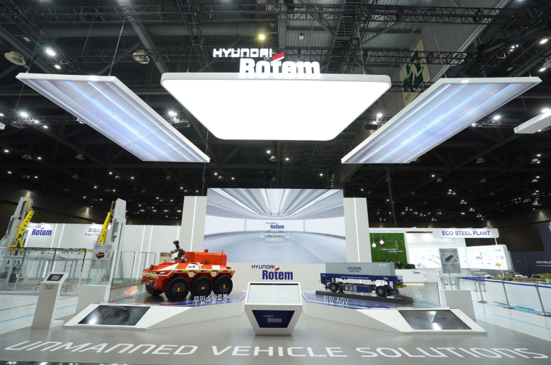 이번 전시에서 현대로템은 △무인소방로봇 △항만 자동이송차량(AGV) △전기차 전용 프레스 설비 △대형 수소 디오라마를 핵심 전시품으로 배치했다.