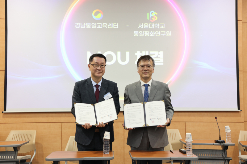 협약식에는 국립창원대 경남통일교육센터 이기완 사무처장과 서울대 통일평화연구원 김범수 원장이 참석해 구체적인 협력 방향과 향후 계획을 논의했다.