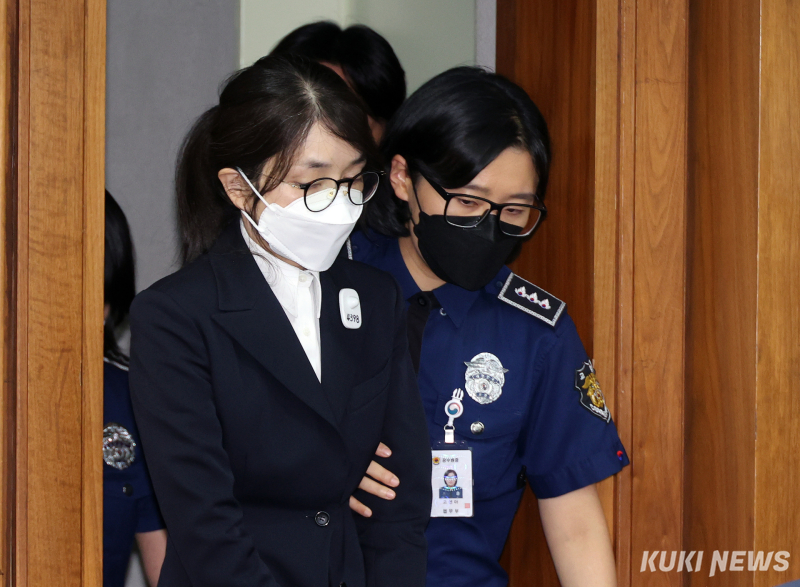 김 여사는 검은 정장 차림에 뿔테 안경, 흰색 마스크를 착용한 채 법정에 출석했다. 머리는 뒤로 묶었고, 왼쪽 가슴엔 수용번호 ‘4398번’이 적힌 배지가 달렸다. 경위의 안내를 받아 피고인석에 앉은 그는 별다른 발언 없이 재판에 임했다.