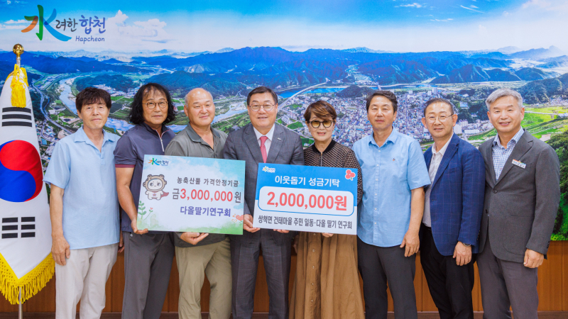 합천군 쌍책면 건태마을(이장 전민자) 주민 일동과 쌍책 다올 딸기 연구회(회장 전송운) 회원들이 합천군청을 방문하여 이웃돕기 성금 200만원을 기탁했다.