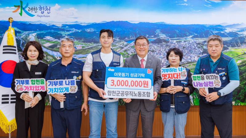 합천군공무직노동조합(지회장 하태식)이 합천군청을 방문해 이웃돕기 성금 300만원을 기탁했다.