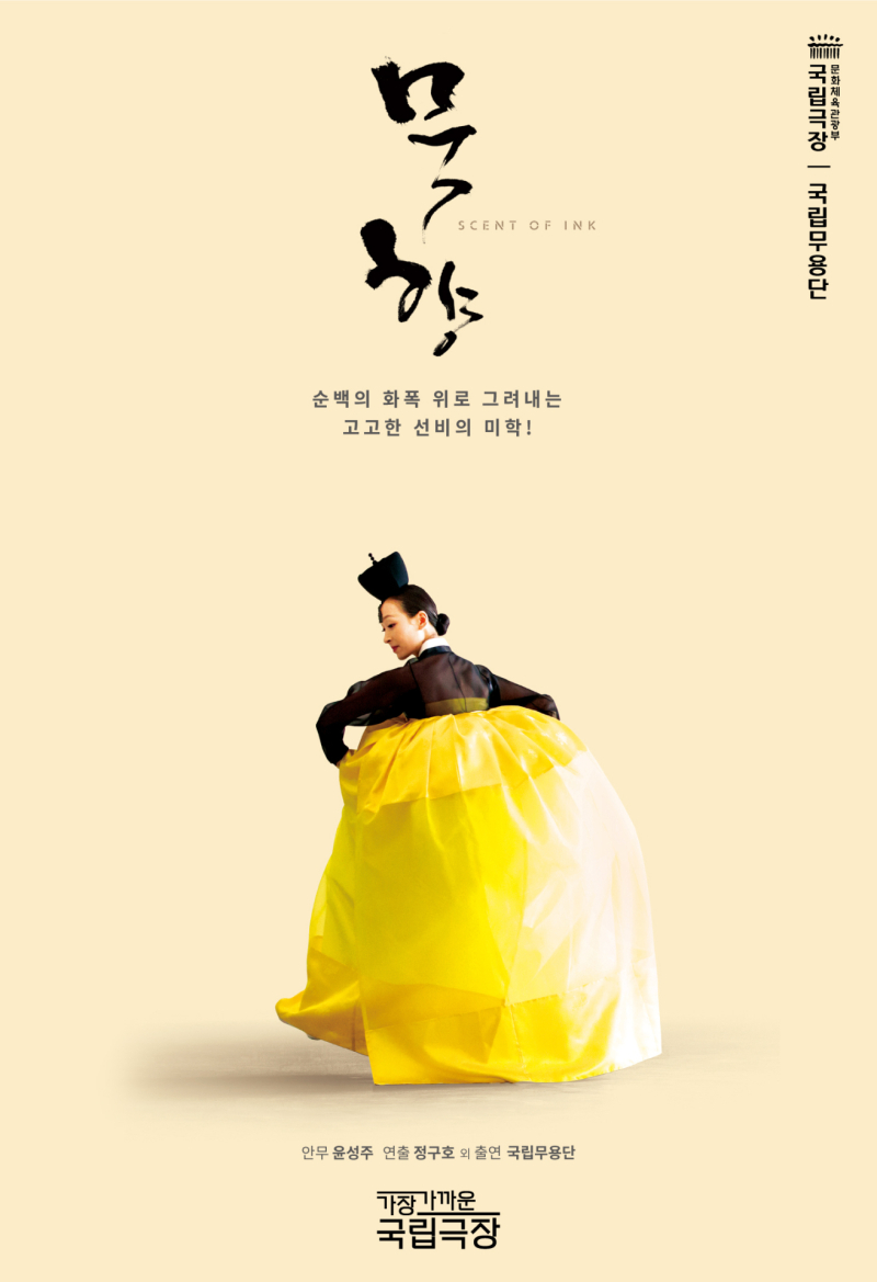 ‘묵향’은 2013년 초연 이후 꾸준히 사랑받아 온 국립무용단의 대표 레퍼토리다. 매·난·국·죽을 주제로 한 6장의 구성으로, 한국 전통 춤사위에 현대적 무대 미학을 결합해 ‘먹(墨)’이 번져가는 듯한 선과 여백의 미를 춤으로 표현했다. 디자이너 정구호가 연출을 맡은 이 작품은 국내외에서 “한국적 정서와 동양적 미감을 압도적으로 구현했다”는 평가를 받았다.