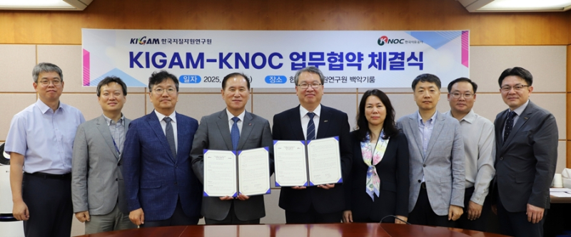 한국지질자원연구원(KIGAM)은 24일 본원에서 한국석유공사(KNOC)와 ‘국내 대륙붕 석유자원탐사 및 탄소중립 분야 협력체계 강화를 위한 업무협약’을 체결했다.