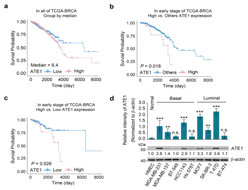 연구팀은 대규모 유방암 환자 유전체 데이터(TCGA)를 분석, ATE1이 정상 세포보다 유방암 세포에서 현저히 높게 발현되는 것을 확인했다.