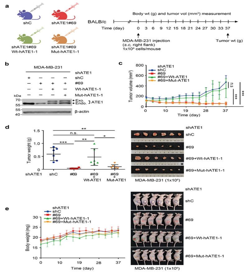 유방암 세포이식 쥐 모델에서도 ATE1 억제 시 종양의 크기와 무게가 현저히 감소하는 결과를 확인했다.