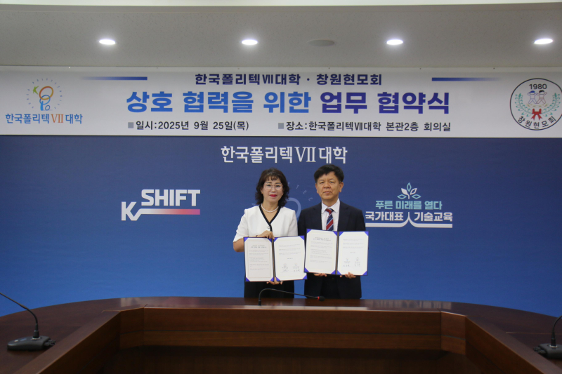한국폴리텍Ⅶ대학(권역학장 조상원)은 25일 창원현모회(회장 김미선)와 미래 인재 양성과 직업교육 확산을 위한 업무협약을 체결했다.