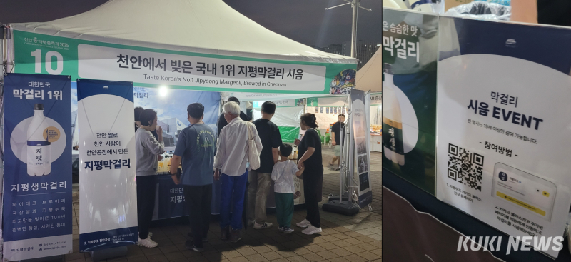 2년 전 천안에 막걸리 공장을 차린 지평막걸리도 홍보 특혜를 받았다. 막걸리 시음을 위해선 자사 어플 설치가 기본이다. 한 시민은 “천안시가 지역 고유 막걸리를 제쳐놓고, 외지(경기도) 막걸리에게 축제장을 내준 이유를 모르겠다”며 혀를 찼다.
