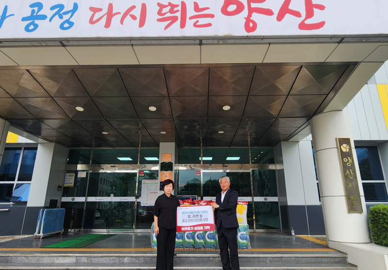 양산시축구협회 전 회장 故 이희선씨 가족이 25일 200만원 상당 추석 성품을 기부했다.