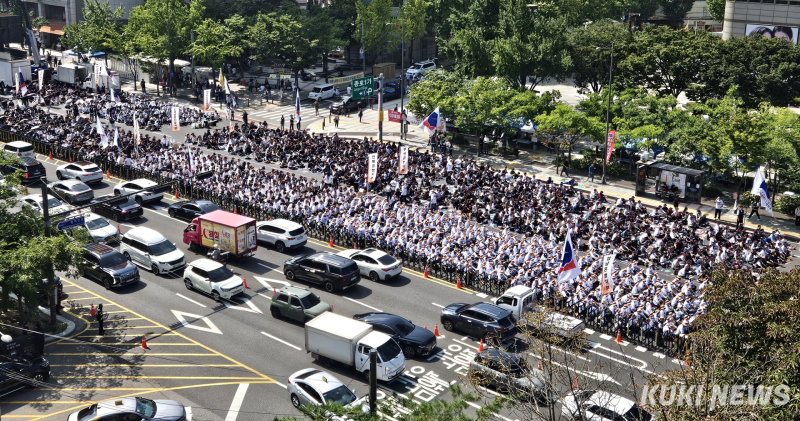 이날 단상에 오른 김형선 금융노조 위원장은 파업의 정당성을 역사적 투쟁에 빗대어 호소했다. 김 위원장은 “2002년 우리 금융노조 선배들의 피와 땀으로 주 5일제를 쟁취했듯, 오늘 우리는 노동시간 단축의 역사를 다시 쓰기 위해 모였다”며 “주 4.5일제는 저출생, 지방 소멸 같은 복합 위기를 돌파할 해법이자 우리 아이들에게 축제 같은 세상을 만들어주자는 약속”이라고 목소리를 높였다.