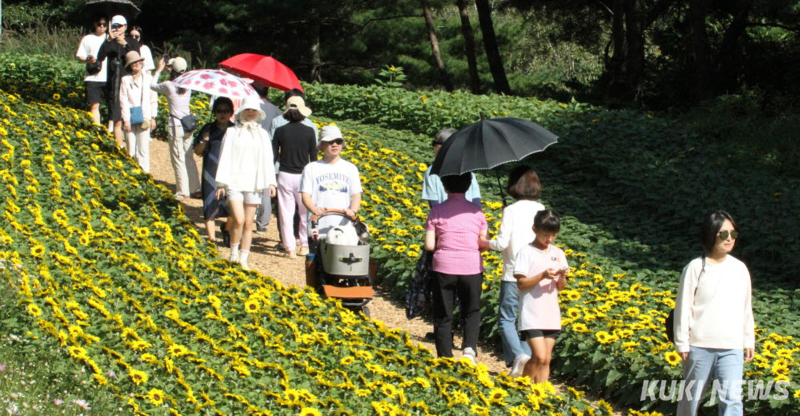 관람객들은 사방으로 펼쳐진 국화밭 속에서 대형 그늘 쉼터에 머물며 사진을 찍고, 가을 향기를 만끽하며 여유를 즐겼다.