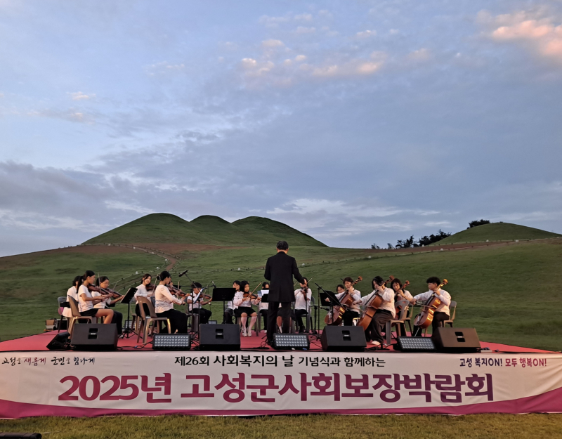 고성군청소년센터 “온” 현악3중주-ON악단은 9월26일 송학동 고분군에서 열린 '제26회 사회복지의 날 기념식 및 2025년 고성군사회보장박람회'행사에 초청돼 현악3중주-ON악단 소속 단원 13명이 공연을 진행했다.