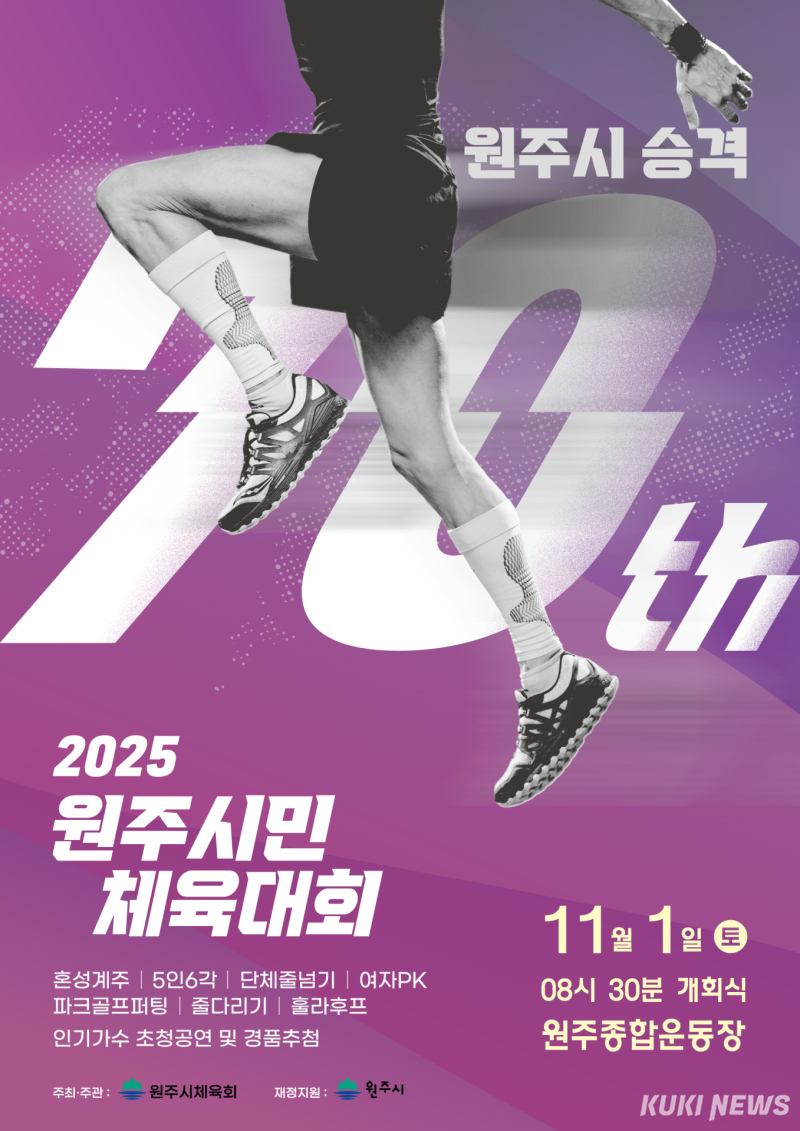 강원 원주시는 시 승격 70주년을 기념하는 ‘2025 원주시민 체육대회’를 개최한다고 29일 밝혔다.