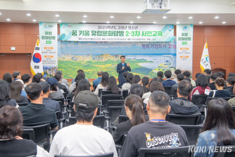 고성군과 고성향토장학회는 28일 고성군청 대회의실에서 '2025년 고성군 청소년 꿈 키움 유럽문화탐방 2·3차 프로그램' 에 참가하는 고교생 54명와 학부모, 학교 관계자를 대상으로 사전 교육을 실시했다.