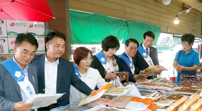 남관우 의장과 김원주 운영위원장, 최용철 행정위원장, 김윤철 복지환경위원장, 박혜숙 문화경제위원장을 비롯한 의원들과 의회사무국 직원 등 20여명이 온누리상품권으로 추석 제수용품을 구매하고 상인들의 애로사항을 청취했다.
