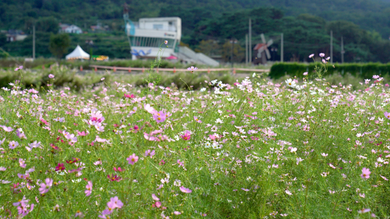 북천면 들녘에는 36헥타르의 코스모스와 6헥타르의 메밀꽃이 활짝 피어나 가을 하늘과 어우러진다. 분홍빛 코스모스와 새하얀 메밀꽃, 여기에 핑크뮬리와 희귀박 터널, 별빛이 내리는 듯한 꽃길까지 방문객들은 꽃길을 걷는 것만으로도 마음이 차분히 물들어가는 시간을 경험하게 된다.