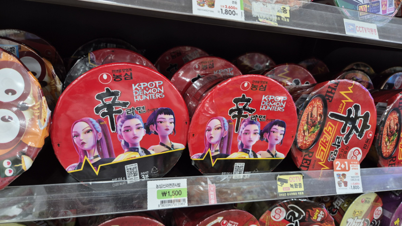 농심은 애니메이션 ‘케이팝 데몬 헌터스(케데헌)’ 캐릭터를 입힌 신라면·새우깡으로 팬심을 자극했다. ‘케데헌 한정판 신라면’ 1000세트는 판매 시작 100초 만에 완판됐다. 파리바게뜨도 헌트릭스 케이크, 소다팝 케이크, 약과티그레, 쑥떡쿠키 등 협업 메뉴를 쏟아냈다.
