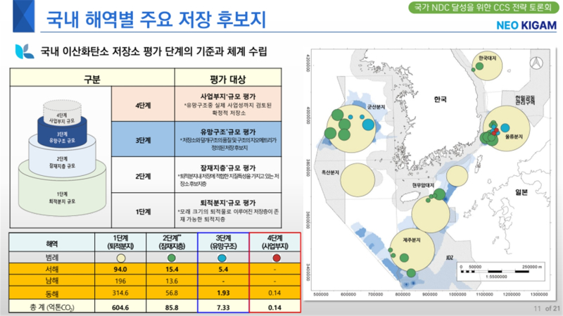 또 서해역에서 1~2년 내 100만 톤급 저장소를 유망구조 수준에서 확보하고, 이어 탐사시추를 통해 2~3년 내 사업부지로 격상하는 과정이 선결돼야 함을 토대로 현재 3단계로 평가된 서해 군산분지에 조속한 신규 3D 탐사가 필요하다고 밝혔다.