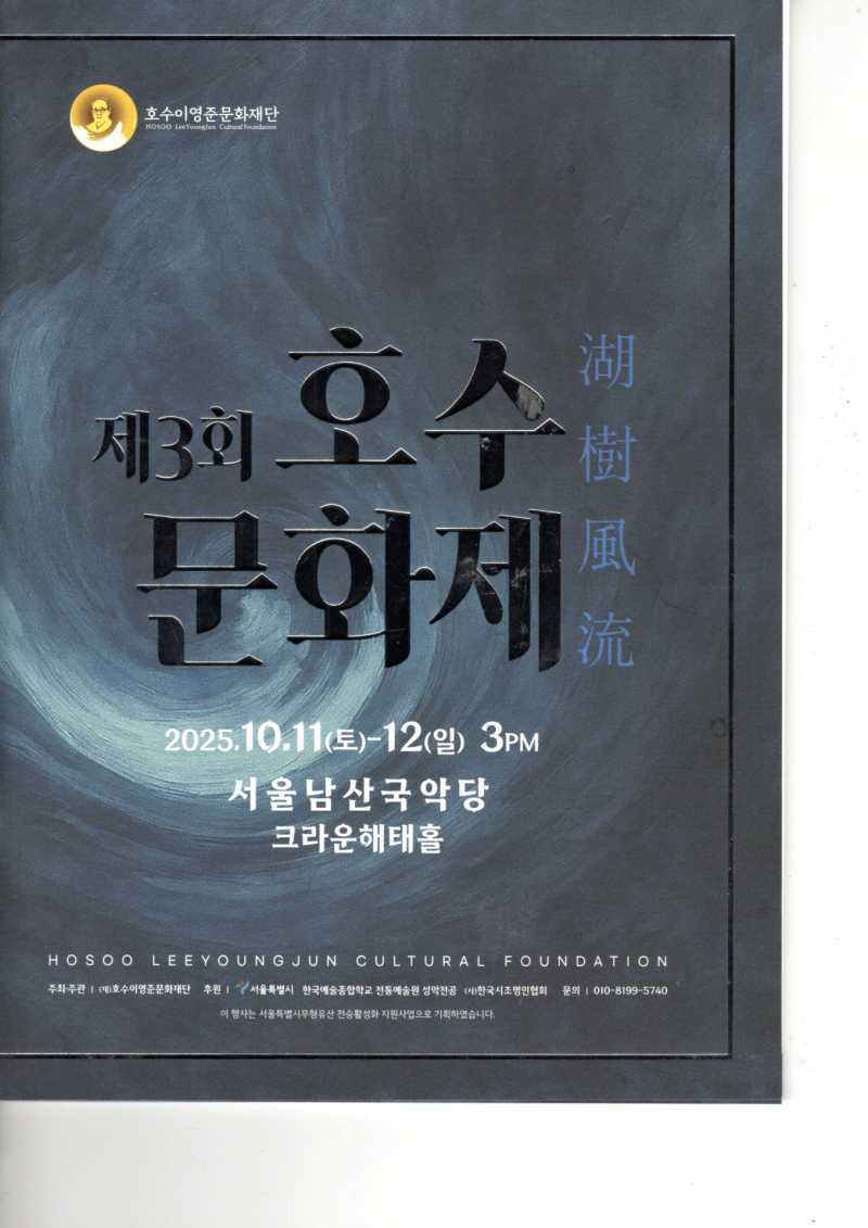 이시은 호수이영준문화재단 이사장은 “호수문화제는 단순한 공연을 넘어, 조상의 전통 문예를 아이들과 함께 나누며, ‘시조의 미래’를 준비하는 뜻깊은 무대”라며 “시조의 아름다움을 다시금 깨닫는 시간이 되길 바란다”고 밝혔다. 한편 이번 공연은 재단법인 호수이영준문화재단이 주최·주관하고, 서울특별시, 한국예술종합학교 전통예술원 성악반, 사단법인 한국시조명인협회가 후원한다. ‘제3회 호수문화제’는 전석 무료다.