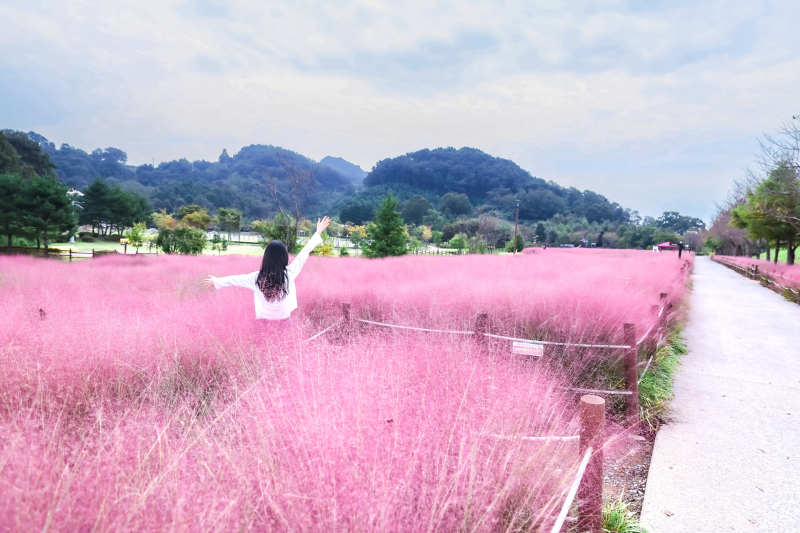 신비로운 분홍빛 핑크뮬리 군락…함안 악양생태공원