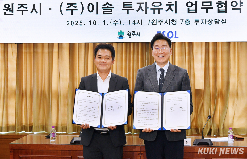 원주시는 1일 오후 시청 투자상담실에서 ㈜이솔(대표 김병국)과 투자유치 협약(MOU)을 체결했다.