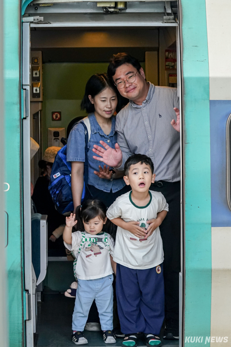 추석 연휴를 앞둔 2일 서울역에 정차한 기차에서 한 가족이 내리고 있다.