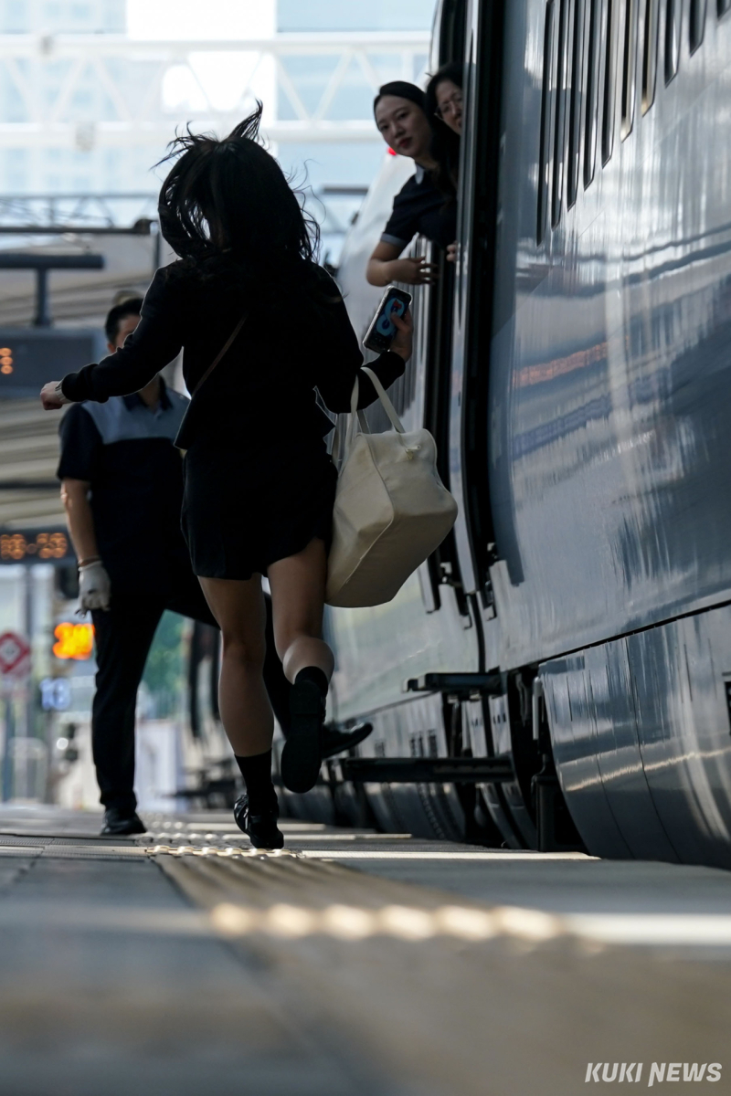 추석 연휴를 앞둔 2일 서울역에서 시민들이 기차를 타기 위해 달리고 있다.