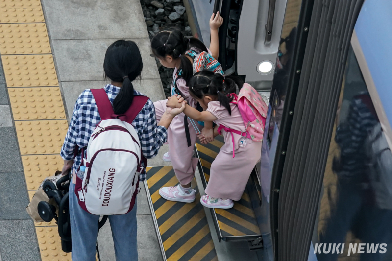 추석 연휴를 앞둔 2일 서울역에서 한 가족이 기차에 오르고 있다.
