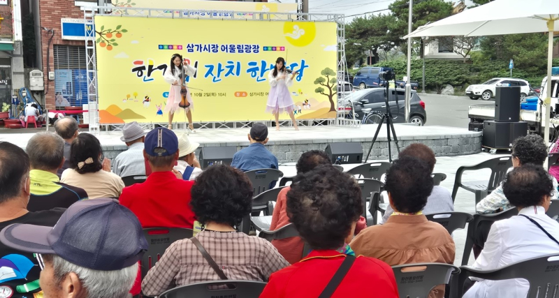 특히 이번 행사는 전통시장의 특색을 살리고 올 여름 침수피해로 어려움을 겪은 삼가시장 상인들에게 활기를 불어넣기 위해 신명나는 트롯 노래, 바이올린과 첼로가 어우러진 국악 퓨전 공연, 지역주민의 색소폰 연주까지 다채로운 공연으로 진행되어 추석을 앞두고 장날에 시장을 찾은 주민들과 시장 상인들에게 풍성한 볼거리와 즐거움을 선사했다.