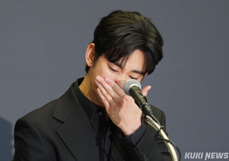 배우 김수현이 31일 서울 마포구 스탠포드호텔에서 기자회견을 열고 최근 불거진 사생활 논란에 관한 입장을 밝히고 있다. 유희태 기자
