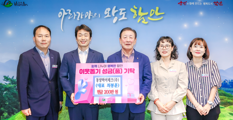 조근제 함안군수는 “명절을 앞두고 이웃사랑 실천에 앞장서 준 동양하이테크(주)에 감사하다”며, “소중한 정성은 도움이 필요한 분들에게 따뜻하게 전달하겠다”고 전했다.