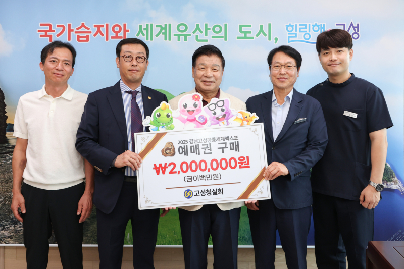 고성청실회(회장 강재훈)도 '2025경남고성공룡세계엑스포의 성공적인 개최를 위해 200만원 상당의 예매권 구매했다.