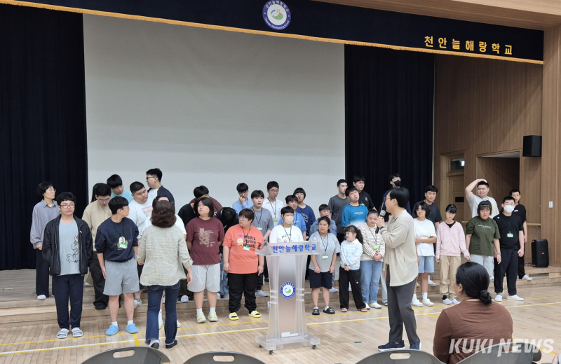 천안늘해랑학교는 음악을 통해 서로를 이해하고 격려하며 공동체 의식을 함양할 수 있도록 초록하모니 합창 활동을 하고 있다. 학생들이 음악을 통해 서로를 이해하고 격려하며 공동체 의식을 함양할 수 있는 기회를 제공하고 있다.