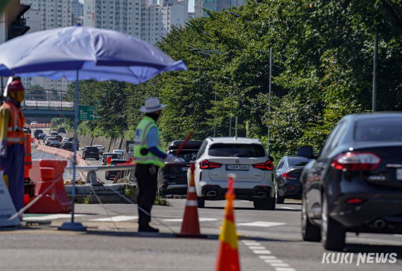 오전 10시30분 기준 경부선 서울 방면은 양산분기점~양산IC 부근 7㎞, 칠곡분기점~칠곡물류IC 부근 5㎞, 신탄진휴게소~신탄진IC 부근 2㎞, 기흥IC~수원신길IC 부근 5㎞에서 극심한 정체가 이어지고 있다.