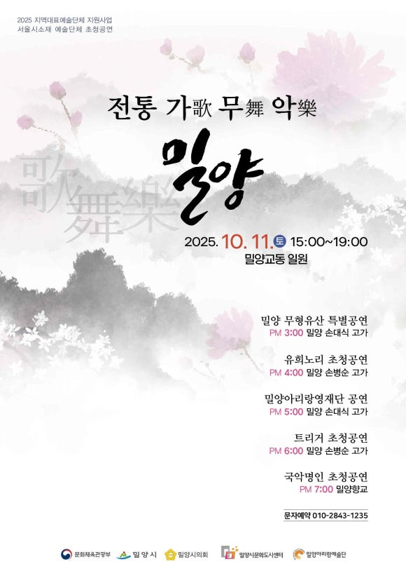 밀양시 관계자는 “전통예술의 감동을 함께 나누고 우리 문화의 아름다움을 더욱 공유하는 시간이 될 것으로 기대한다”라며 “앞으로 밀양이 전통과 현대, 세대와 지역을 잇는 소통과 협업의 중심지가 되어, 문화예술의 지속 가능한 발전을 선도해 나가겠다”라고 말했다.