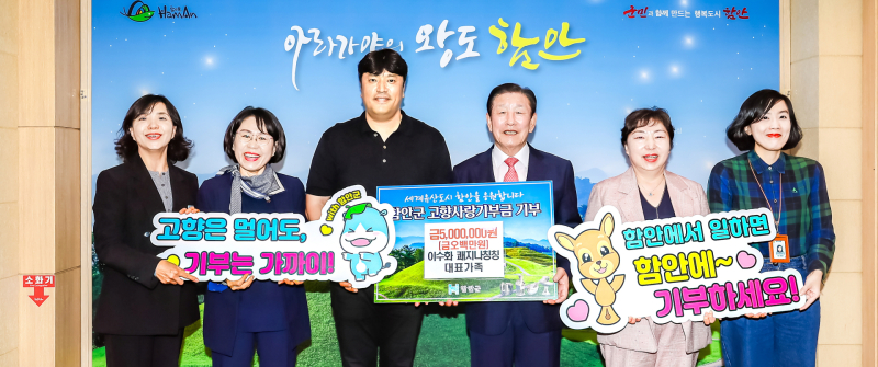 함안군 가야읍의 대표 맛집 쾌지나칭칭 이광한 대표가 지난 10일 함안군청을 방문해 고향사랑기부금 500만원을 기탁하며 지역사회에 따뜻한 울림을 전했다.