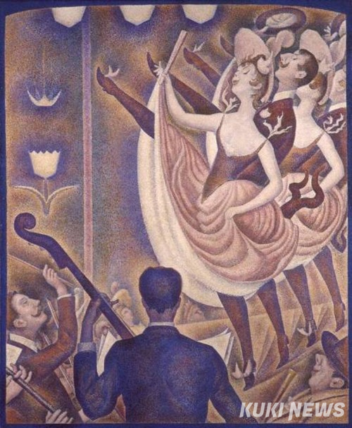 파리의 밤은 언제나 환희가 가득 찬 예술의 무대였다. 그중에서도 무랑루즈의 캉캉은 단순한 춤을 넘어, 시대의 금기를 흔드는 도발이었다. 다리를 높이 들어올리는 무용수들의 대담한 동작은 관능과 에너지의 상징이었고, 그 소란스러운 리듬은 예술가들의 영감을 자극했다. 쇠라의 <르 샤위>는 바로 그 순간을 점묘법으로 정교하게 포착한 작품이다.