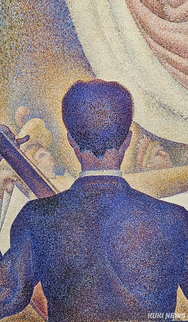 이러한 구성은 우연이 아니다. 쇠라는 철저한 계산과 점묘법을 통해 시선의 흐름을 유도하고, 공간의 질서를 구축했다. 무대 위의 빛과 색은 춤추듯 퍼지고, 관객의 시선은 그 흐름 속에서 방향을 잃는다. 예술은 단지 보여지는 것이 아니라, 바라보는 방식에 따라 의미가 달라진다는 것을 이 작품은 말해준다.