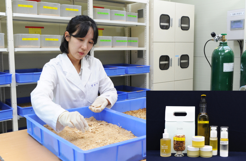 전남농업기술원 곤충잠업연구소는 버려지는 곤충 오일의 부가가치 창출을 목표로 기능성 검증 및 제품화 연구를 꾸준히 추진, 갈색거저리 오일에는 다량의 토코페롤이 함유돼 있어 우수한 항산화 및 항염증, 미백 효과가 확인됐다.