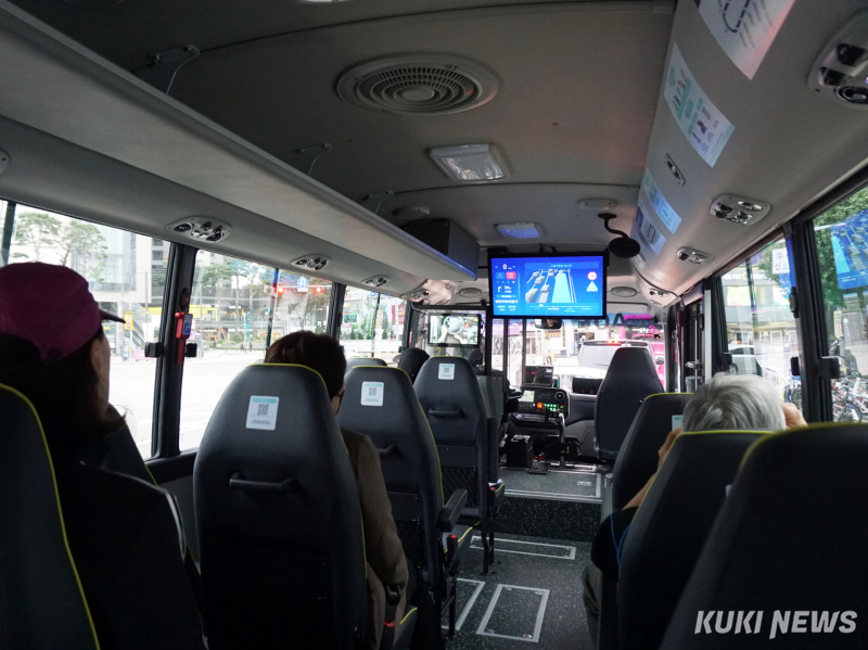 버스 전면에는 승객이 운전 상황을 확인할 수 있는 CCTV가 설치돼 있고, 자율주행 시 알림과 표시가 따로 제공된다. 양씨는 “정말로 손을 떼고 운전할 수 있을지 의문이 들었는데 버스를 타 보니 ‘이 정도면 괜찮겠다’는 생각이 든다”고 말했다.