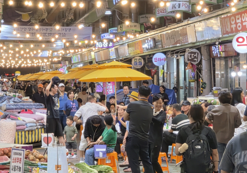 가을 대표 축제인 제2회 명서 호롱불 야시장은 10월 25일까지 매주 금·토요일 운영된다. 은은한 호롱불 조명과 거리 공연, 체험 부스가 어우러져 전통시장을 가을 낭만 거리로 바꿨다. 향토기업과 협업한 전국 최초 기업 연계형 야시장으로 매회 만석을 기록하며 큰 인기를 끌고 있다.
