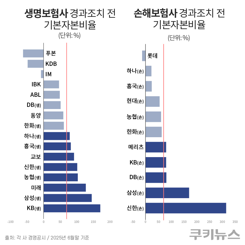 보험사들이 잇따라 유상증자에 나서는 배경에는 자본 확충 압박이 자리한다. 금융당국은 최근 과도한 자본성증권 의존을 지적하며, 기본자본비율 중심의 질적 규제 도입을 예고했다. 새 기준은 50~70% 수준에서 결정될 것으로 알려졌다. 현재 기본자본비율이 70% 미만인 생명보험사 8곳과 손해보험사 6곳 등 총 14개사가 관리 부담이 큰 것으로 파악된다. 기준을 50%로 완화해도 6개사는 여전히 규제망에 포함된다.
