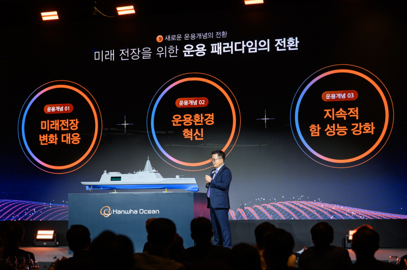 어성철 특수선사업부장은 "한화오션이 이번 함정을 통해 대한민국 함정사에 큰 이정표를 남기려 한다"며 "글로벌 안보환경 변화와 해양패권 경쟁에 대비할 새로운 플랫폼이 필요해 개발을 추진했다"고 말했다.