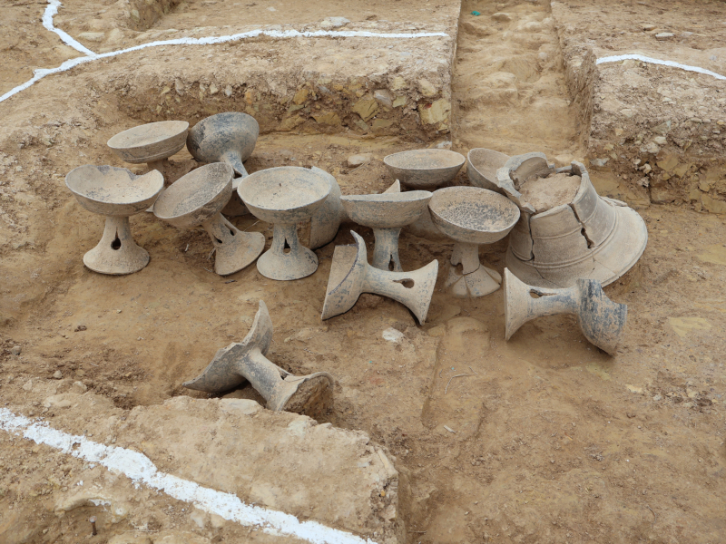 불꽃무늬굽다리접시 출토 모습 조사 대상지는 말이산고분군이 처음 조성된 중심 구역 동구릉 북쪽으로, 우리나라 최초로 말갑옷이 확인된 마갑총 인근에 위치해 학술적으로 매우 중요한 지역이다.