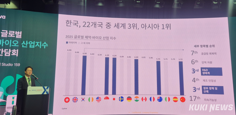 글로벌 생명과학 기업 싸이타바는 16일 서울 강남구 코엑스에서 ‘2025 글로벌 제약·바이오산업 지수 기자 간담회’를 열고 이같은 결과를 담은 보고서를 발표했다. 이 보고서는 싸이티바가 영국 파이낸셜 타임스 산하 리서치 기관인 ‘롱지튜드’와 공동으로 2년마다 발표한다.