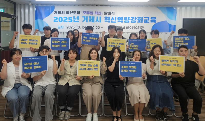 거제시 저연차 공무원들이 주축이된 한 혁신모임 '모두의 혁신' 활동이 15일 시작됐다. 이들 모임 회원 23명은 이날 ‘혁신역량강화 교육’을 받았다.